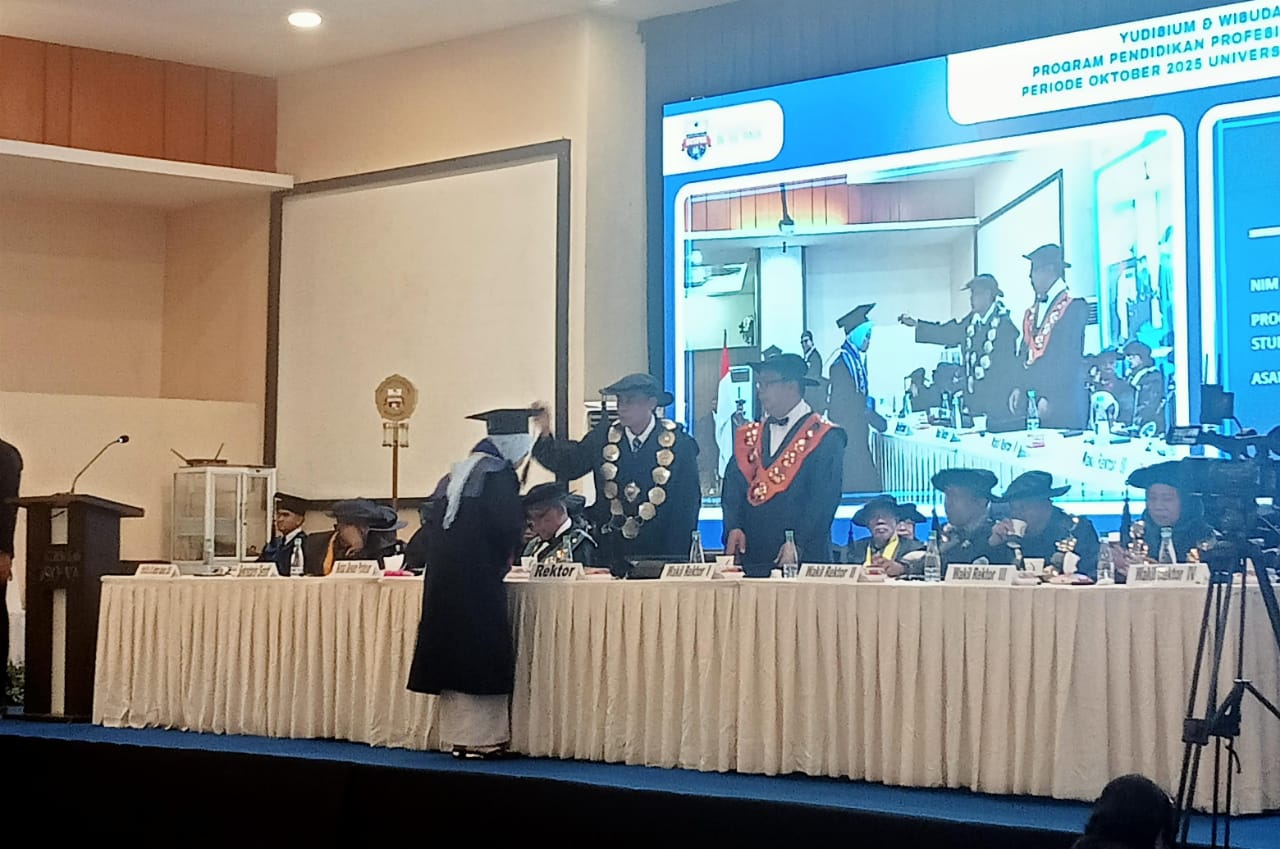 Rektor Universitas Bosowa (Unibos), Prof. Batara Surya mengukuhkan 1.421 wisudawan - wisudawati Program Pendidikan Profesi Guru Periode Oktober 2025 di Balai Sidang 45, Jalan Urip Sumoharjo, Makassar pada Rabu (29/10).