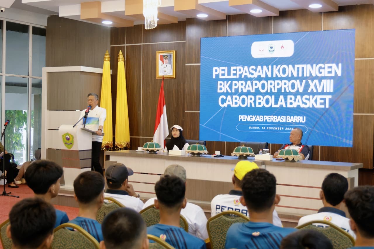 RADARMAKASSAR.ID – Wakil Bupati Barru, Abustan Andi Bintang secara resmi melepas kontingen cabang olahraga bola basket Kabupaten Barru yang akan berlaga pada Pra Pekan Olahraga Provinsi (Pra Porprov) XVIII Sulawesi Selatan 2025.