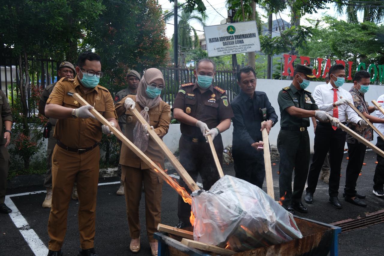 Pemusnahan ini merupakan hasil penegakan hukum terhadap 12 perkara dengan total 15 terdakwa yang terlibat dalam pembuatan, pembiayaan, pencetakan, hingga peredaran uang palsu di wilayah Kabupaten Gowa beberapa waktu lalu.
