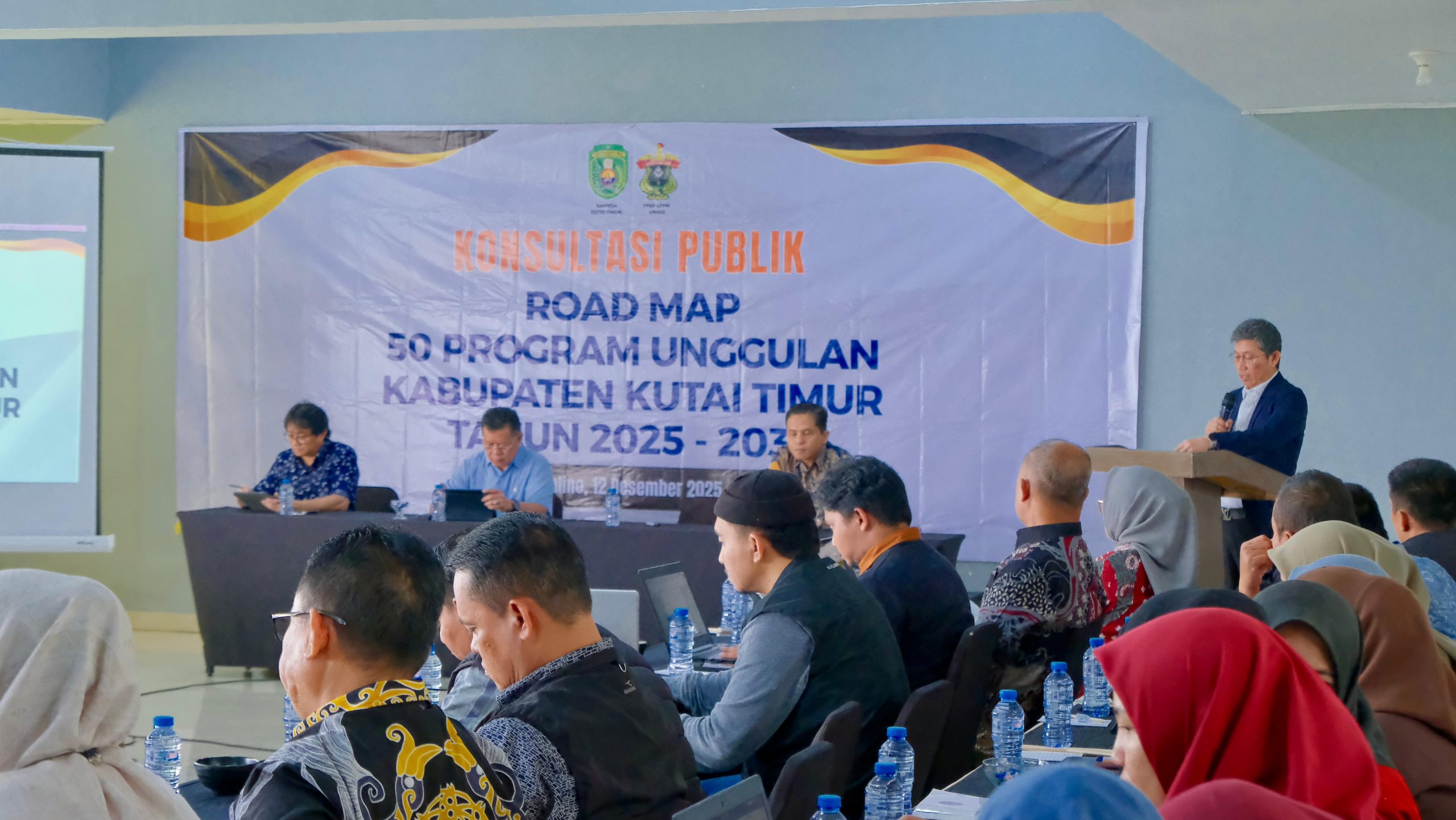 Konsultasi publik menghadirkan pemangku kebijakan Kabupaten Kutai Timur dan tim penyusun dari Unhas, dengan tujuan menyempurnakan dokumen roadmap sekaligus memastikan keselarasan antara visi kepala daerah, hingga kondisi objektif lapangan.