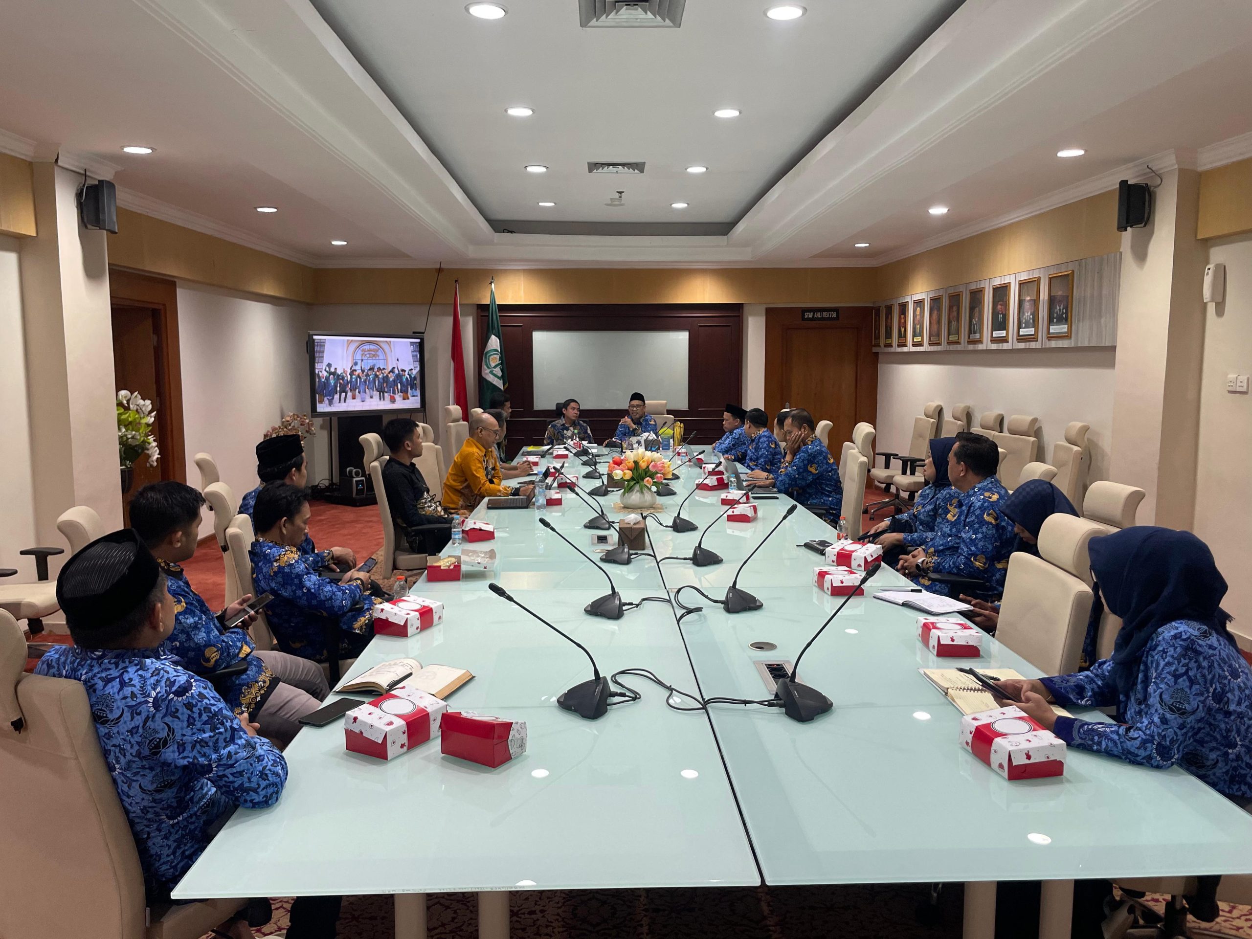 Rombongan Itjen Kemenag RI diterima langsung oleh Wakil Rektor Bidang Kerja Sama dan Pengembangan Lembaga UIN Alauddin Makassar, Prof. Muhammad Amri Tajuddin, di Ruang Rapat Rektor Gedung Rektorat.