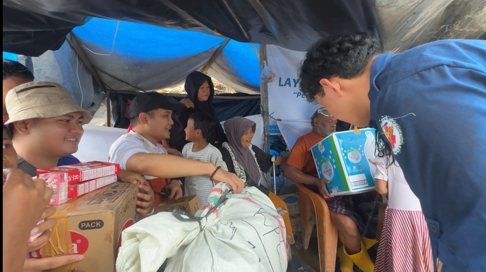 Tim Relawan Kemanusiaan UMI, kampus dari Sulawesi Selatan ini menyalurkan logistik makanan ringan, susu anak, sandal, dan kelambu bagi warga yang masih bertahan di posko dan tenda pengungsian, Jumat (19/12/2025).