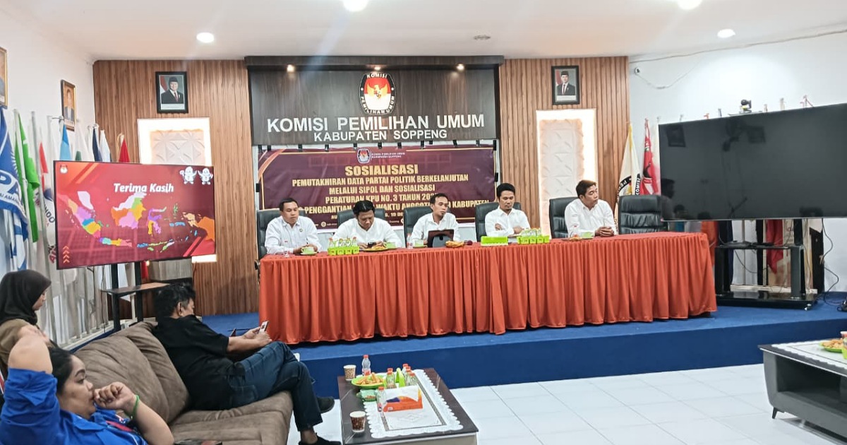 RADARMAKASSAR.ID – Komisi Pemilihan Umum (KPU) Kabupaten Soppeng menggelar sosialisasi Pemutakhiran Data Partai Politik Berkelanjutan dan Peraturan KPU (PKPU) Nomor 3 Tahun 2025 tentang Penggantian Antar Waktu (PAW) Anggota DPRD, Jumat (19/12/2025). Kegiatan tersebut berlangsung di Aula Kantor KPU Kabupaten Soppeng.