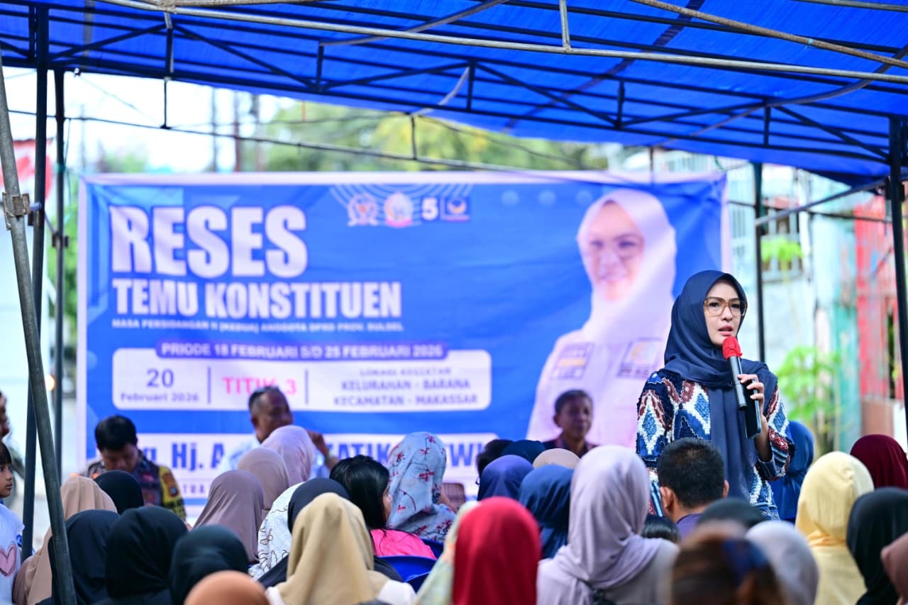 RADARMAKASSAR.ID — Ketua DPRD Sulawesi Selatan Andi Rachmatika Dewi menggelar reses untuk menyerap aspirasi masyarakat di Kelurahan Barana, Kecamatan Makassar, Kota Makassar, Jumat (20/2/2026).