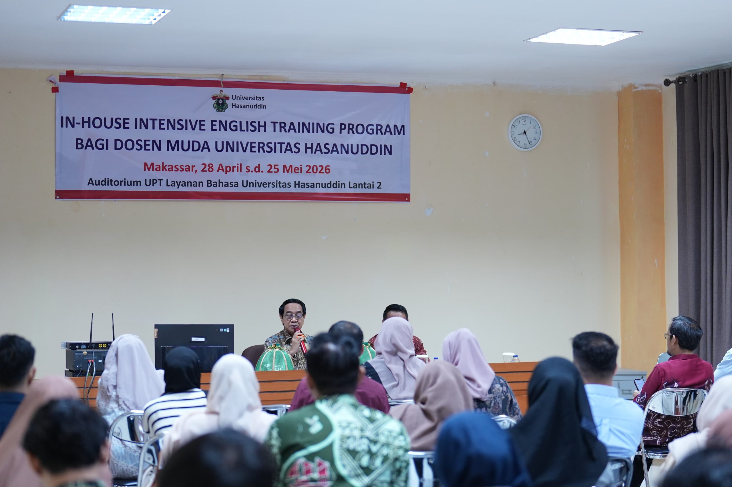 Radarmakassar.id -Universitas Hasanuddin terus memperkuat kualitas sumber daya manusia melalui pengembangan kapasitas akademik dosen muda. Salah satu langkah strategis tersebut diwujudkan melalui peluncuran In-House Intensive English Training Program bagi Dosen Muda Universitas Hasanuddin, yang berlangsung di Auditorium UPT Layanan Pusat Bahasa Unhas, Selasa (28/4)